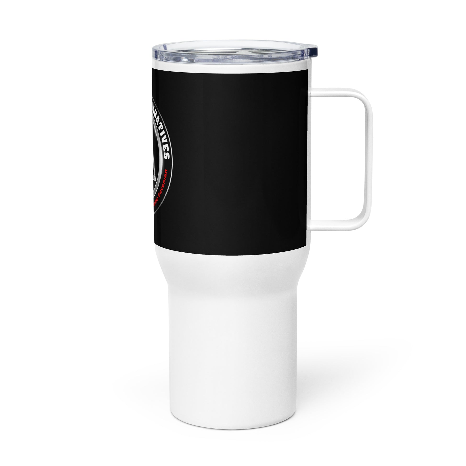 Travel mug with a handle - Black - Adrenaline Combatives - Logo