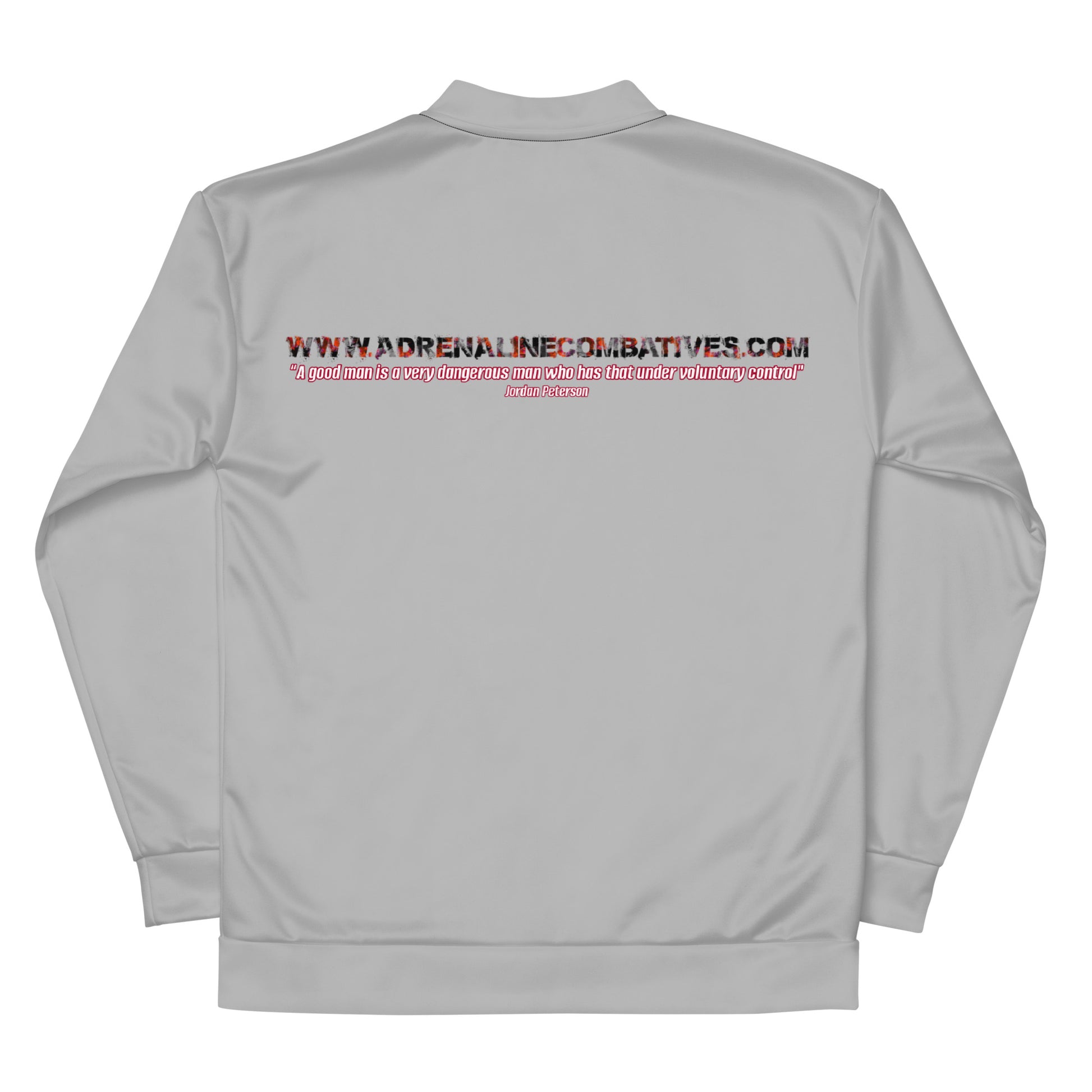 Unisex Bomber Jacket - Adrenaline Combatives - Jordan Peterson Quote: “A good man is a very dangerous man who has that under voluntary control"