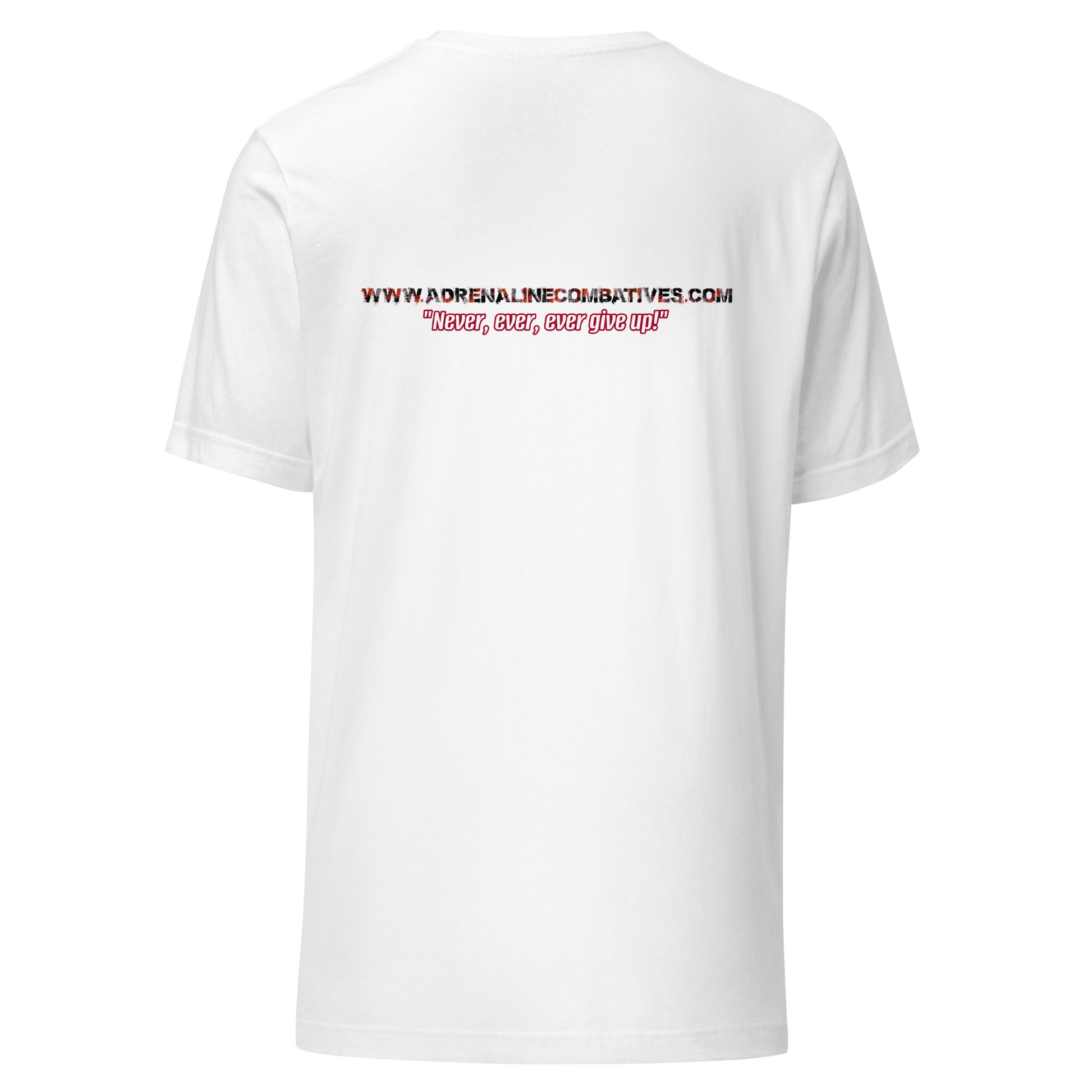 Unisex t-shirt - Adrenaline Combatives - Quote: “Never, ever, ever give up!”